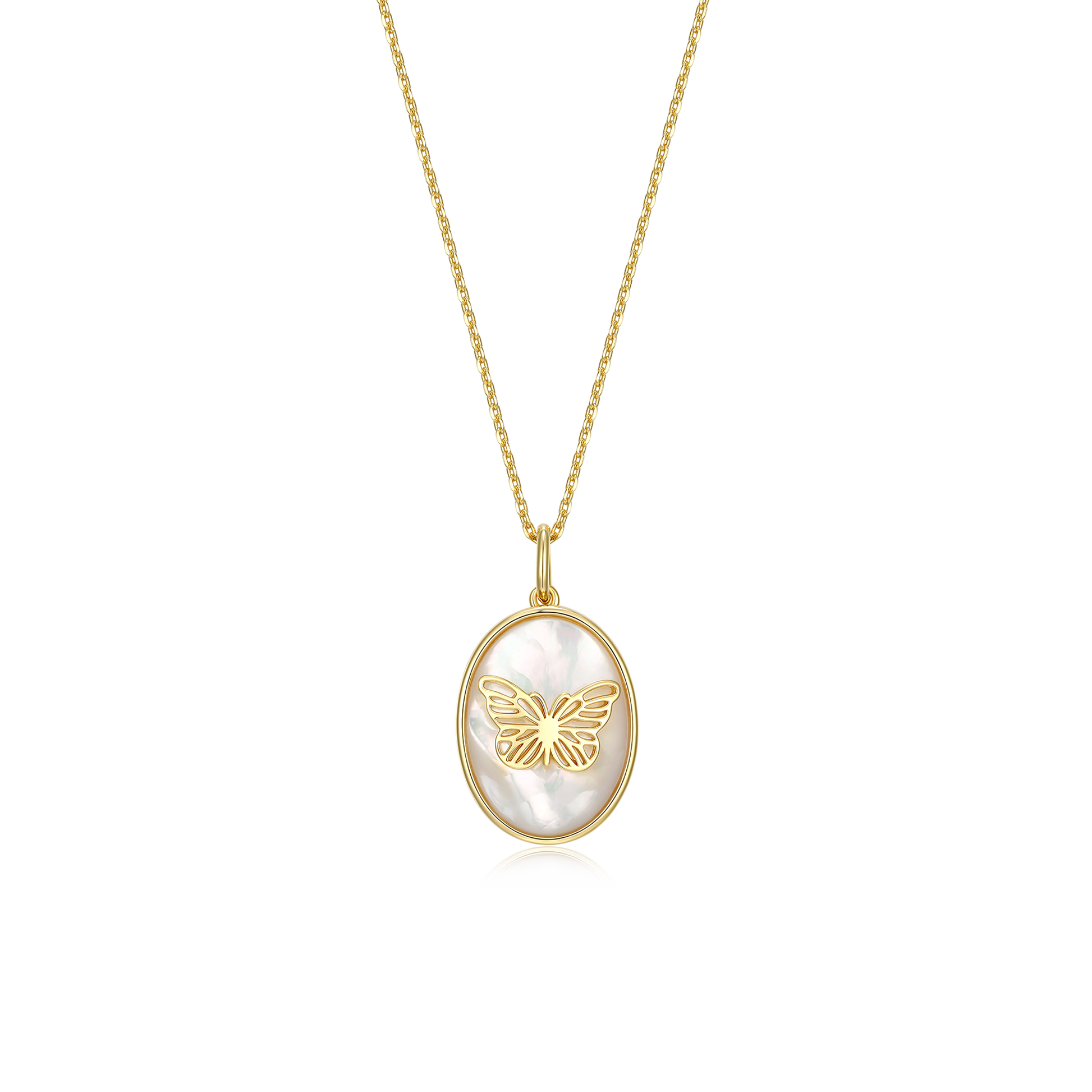 Butterfly Design: The pendant showcases a graceful butterfly silhouette (approx. 21mm x 12mm), symbolizing transformation and beauty, with the captivating natural iridescence of the pearl shell as its wings.