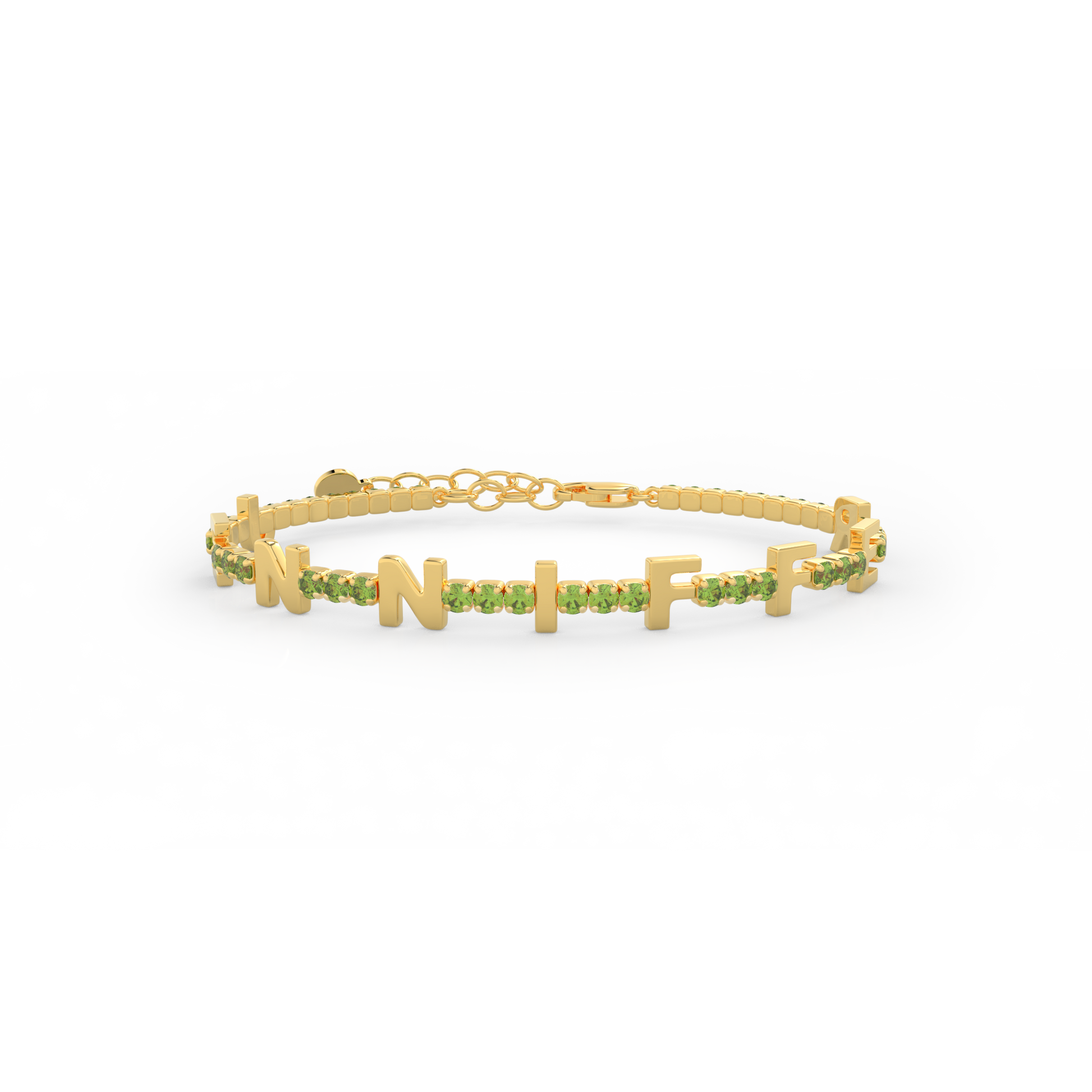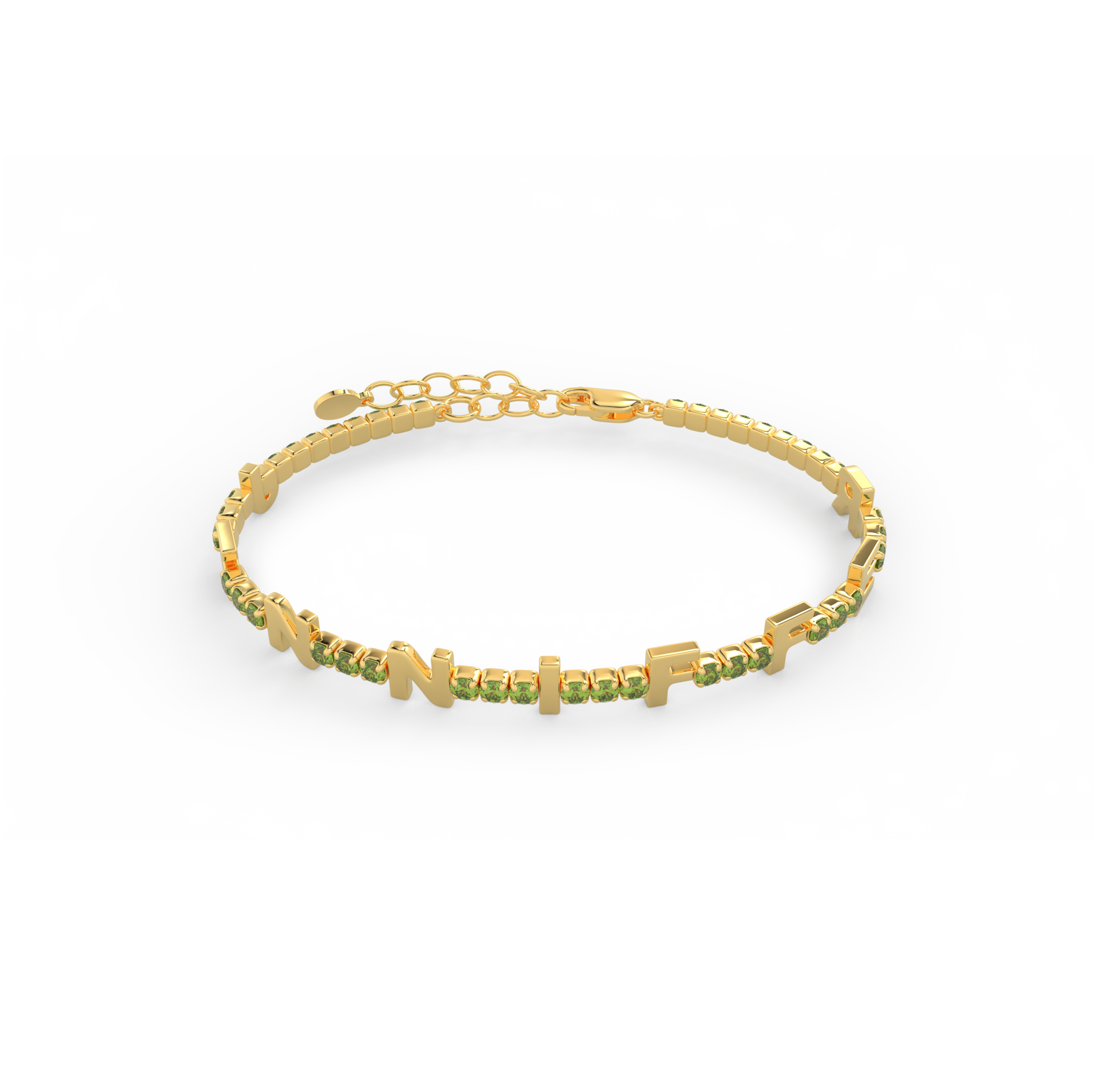 A brilliant birthstone-lined bracelet, custom-made with your name and your month — where identity meets sparkle, and every gem tells your story.