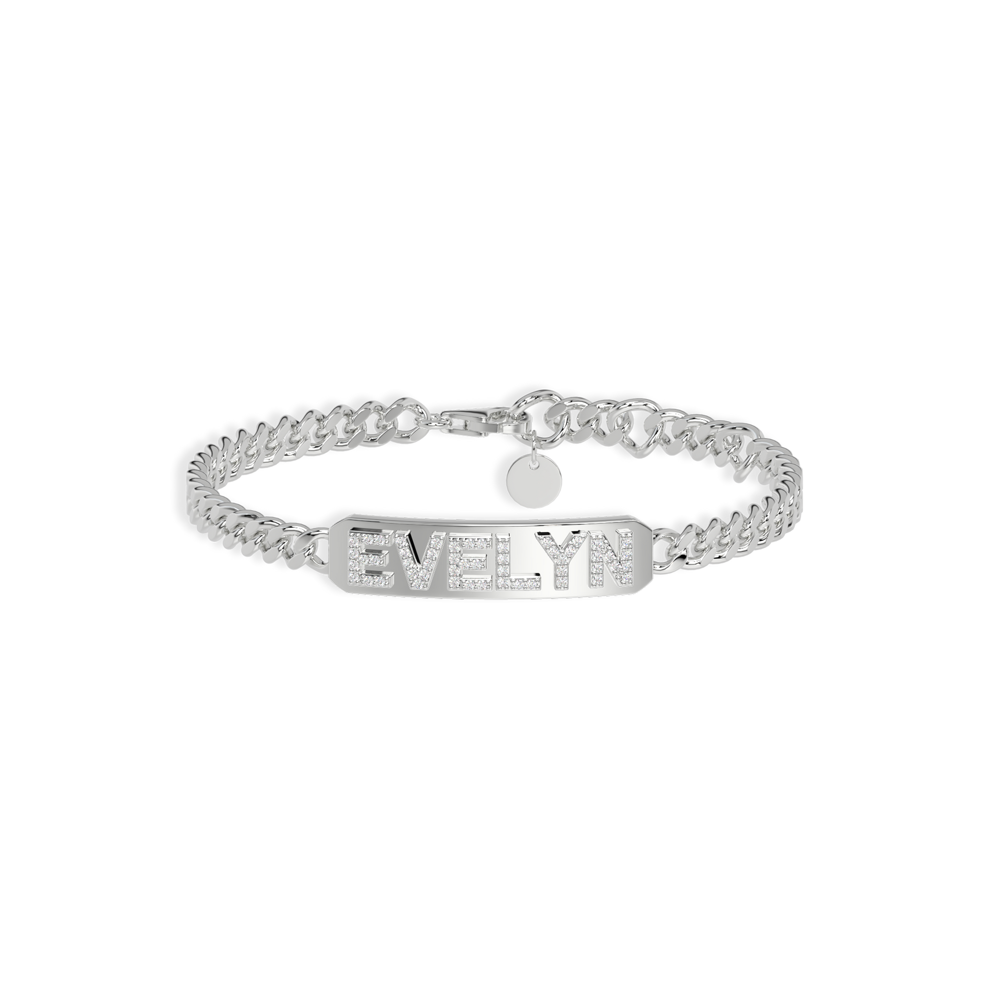 Craft your signature style with our Custom Cuban Link Alphabet Bracelet. Expertly handcrafted in premium 925 Sterling Silver, this bold chain features your choice of 1 to 9 initials sparkling with lab-created cubic zirconia (CZ) stones.